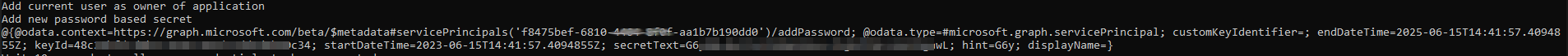 Querying the service principle again with Azure AD PowerShell shows the new credential added.